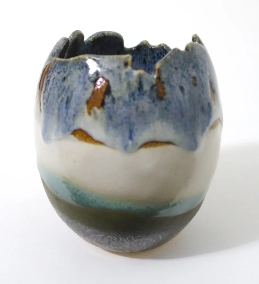 When my mom’s first piece of ceramics came out of the glaze firing, I was really surprised - the overlapped spot of Red Earth over Green Tweed looked metallic and reflective! So far, I’ve only seen that kind of glaze result from raku, and those are somewhat unstable and decorative (not watertight). I was excited to see what this new food-safe stoneware glaze combination would look like on a larger scale, so I tried it out on several pieces! This glaze combination seems somewhat chaotic in terms of its uniformity, density, and reflectiveness, but I’ve always enjoyed the balance that natural chaos can bring to my tight artistic hand.